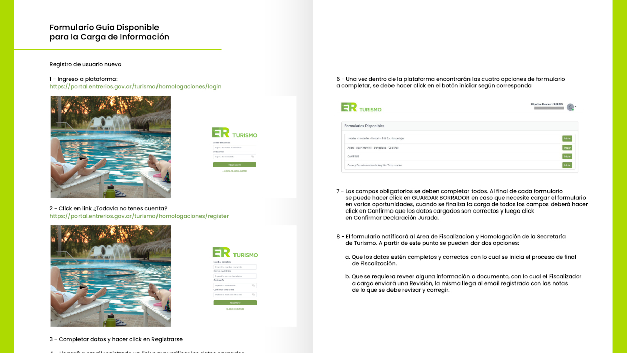 La homologación es un registro establecido por Ley 7.360 – Decreto 117/70, a partir del cual la Secretaría de Turismo de Entre Ríos fiscaliza, categoriza y garantiza la calidad de los establecimientos que ofrecen servicios de alojamiento en territorio provincial. A partir de esta implementación, el trámite de homologación consistirá en completar un formulario disponible en el portal oficial del organismo, adjuntar la documentación requerida y facilitar imágenes para que el área de Fiscalización pueda hacer un primer control. Aquel prestador que haya cumplimentado con todos los pasos podrá acceder rápidamente a una certificación dotada de todos los efectos propios de la homologación.